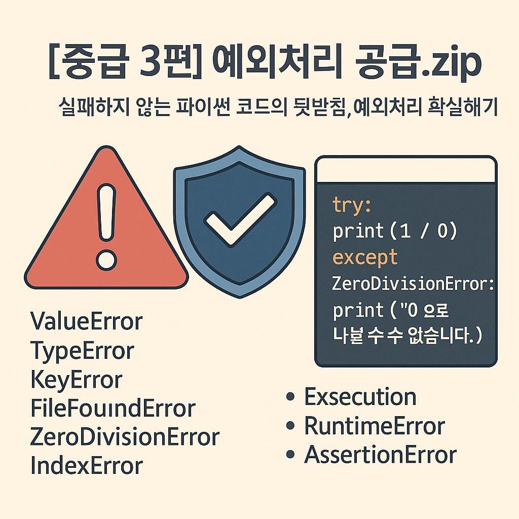 파이썬중급,예외처리,tryexcept,finally,raise,사용자정의예외,에러핸들링,코딩안정성,실무코드,파이썬오류관리