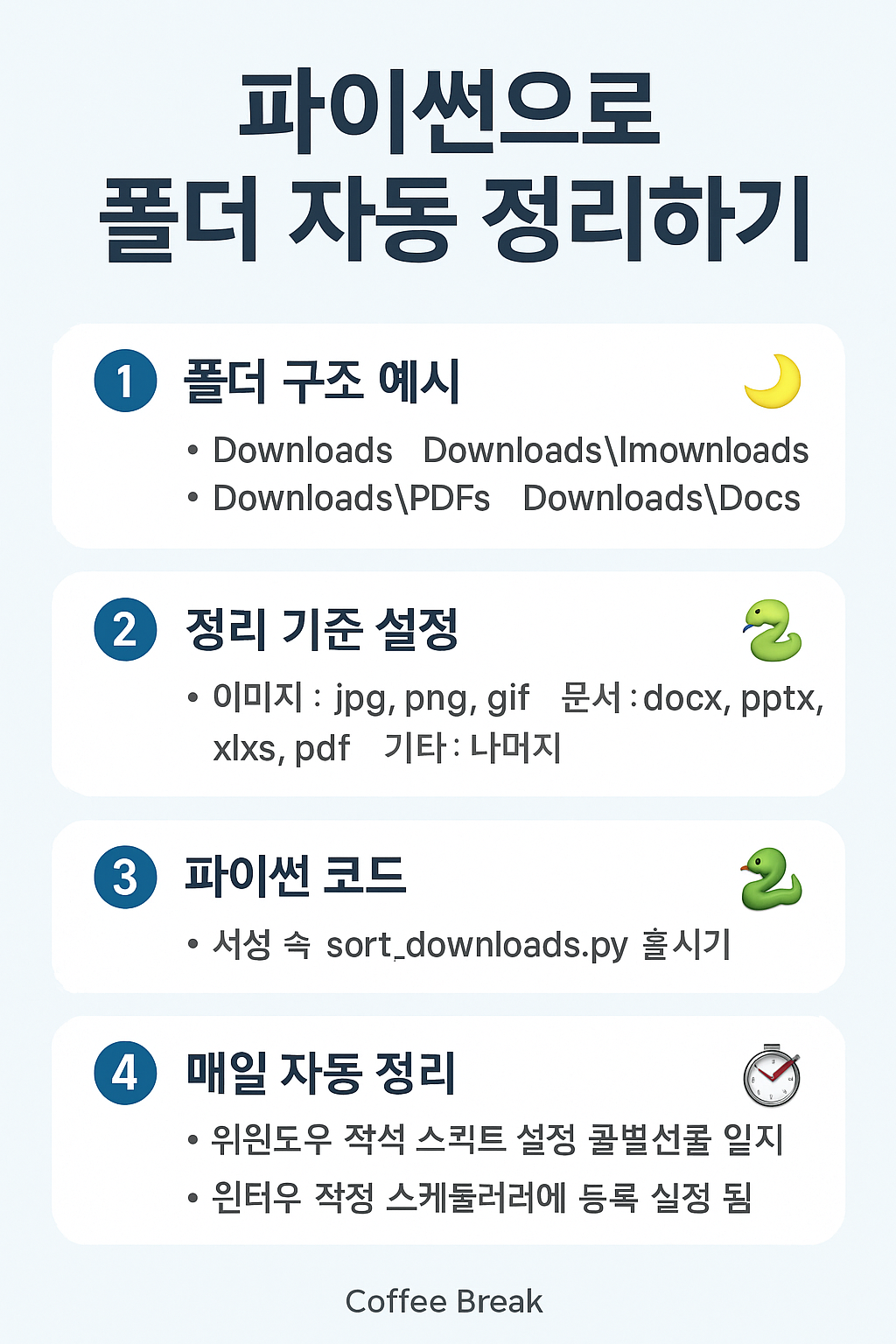 - 정리 대상 폴더: C:\Users\사용자\Downloads