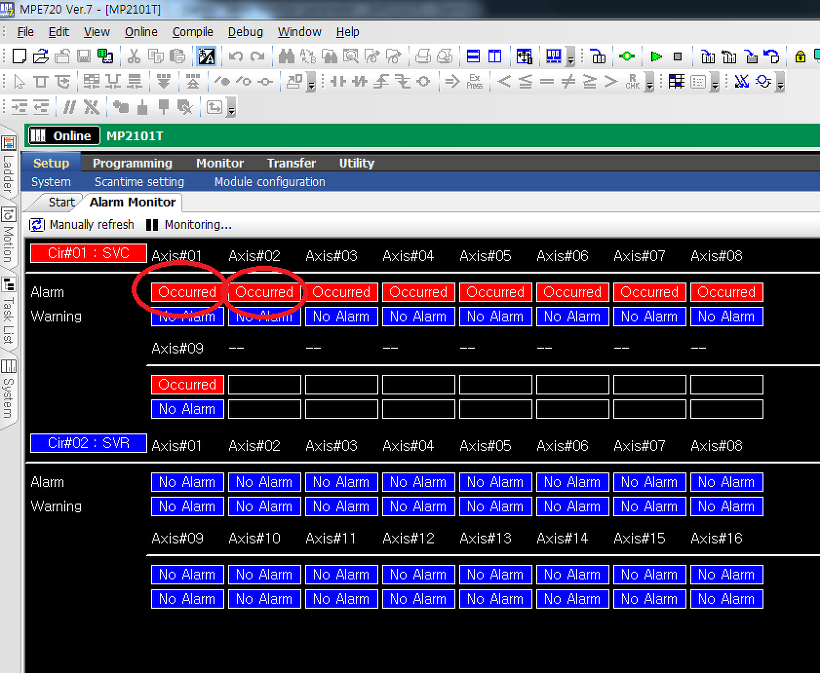 Alarm Monitor 알람 상태, 알람 코드, 알람클리어 할 때 사용한다.