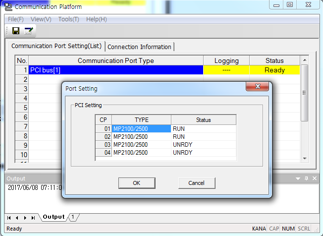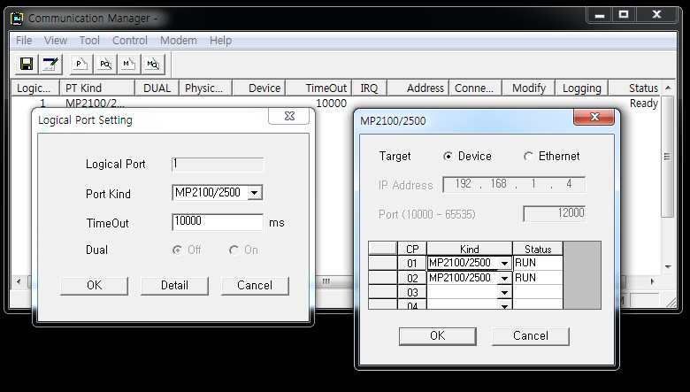 Communication Manager 프로그램을 실행하고, CP01, 02에 MP2100을 잡아준다.