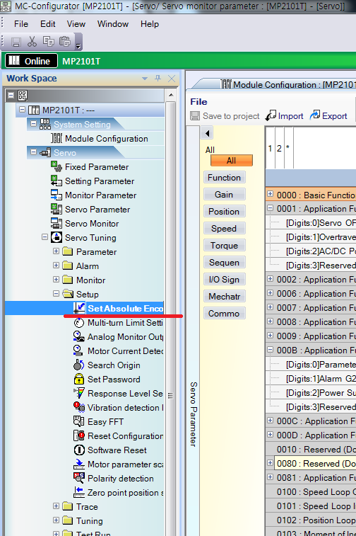 아래의 Set Absolute Encoder를 클릭하여 엔코더리셋을 해줘야한다.