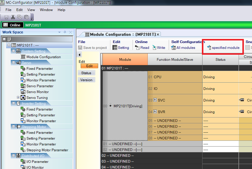 Module Configuration 이건 파라미터 값 수정할 때 사용한다.(젤 많이 사용)