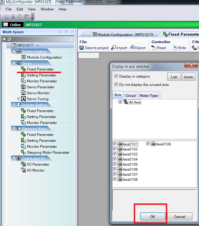그중에 처음으로 Fixed Parameter를 선택하여 모든 축을 불러온다.