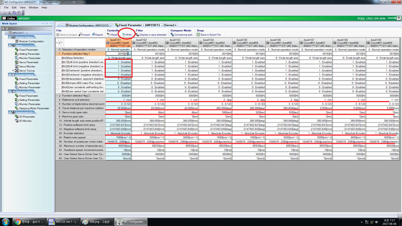 참고로 난 MP2101T 메카트로링크3 고속판 16축짜리 2개를 사용했다.