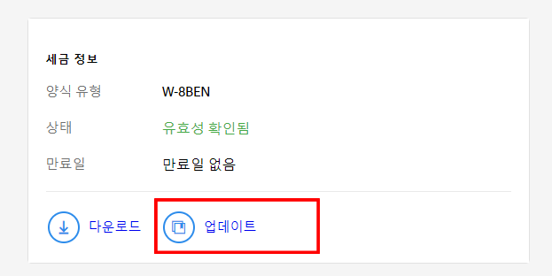 ※ 처음 하시는 분들은 "업데이트" 대신 "세금정보추가" 그림이 나올 겁니다. "세금정보추가" 클릭!