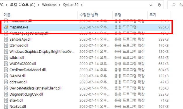 ※ mspaint.exe 넣는 경로 (C:\Windows\System32)