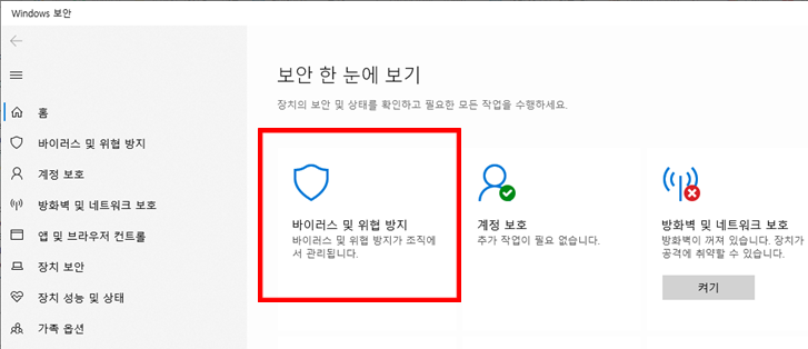 ※ Windows 10을 사용하면 Defender라는 백신 프로그램이 설치 되어 있다.