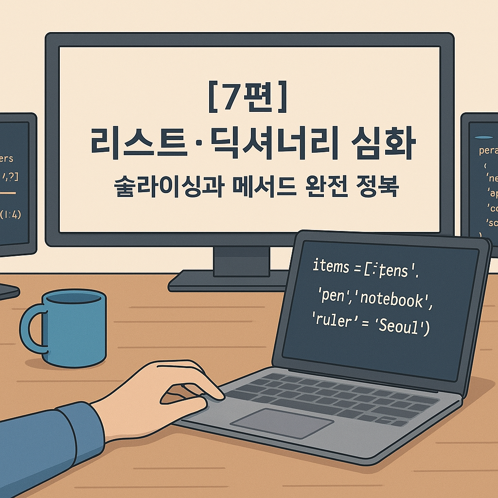 파이썬기초, 리스트, 딕셔너리, 슬라이싱, 메서드, 자료구조, 코딩입문, 개발자블로그, 파이썬심화, Python리스트